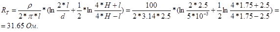 Н=1,75 м. – расстояние от поверхности грунта до середины заземлителя,