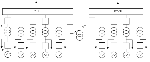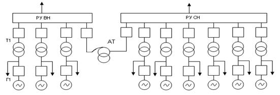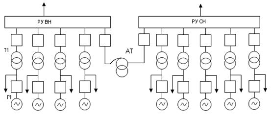 Связь между РУ выполняется с помощью автотрансформаторов.