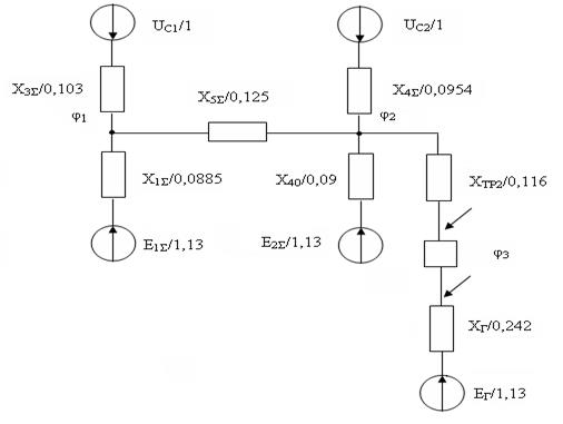 Рис. 7.7 Схема замещения для цепи тока зоны VI на стороне СН