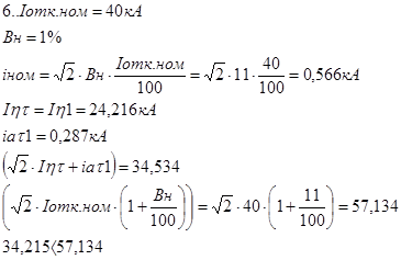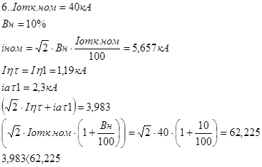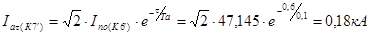 Апериодическая составляющая тока КЗ в точке К7 определяется для момента отключения короткого замыкания, которое происходит при t = 0,6с.: