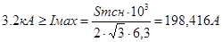= 6,3 – кратность пускового тона эквивалентного асинхронного двигателя, вычисленная как усредненное значение кратностей пусковых токов асинхронных двигателей, включенных на одну секцию С.Н. нормальной эксплуатации.
