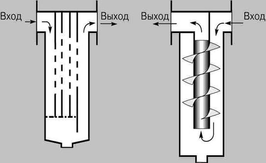 Рис. 6. СЕПАРАТОРЫ ПАРА, устанавливаемые перед паропотребляющим аппаратом (слева - лабиринтный, справа - центробежный).