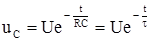 Напруга на конденсаторі при розрядці виражається рівнянням