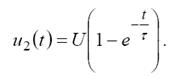 Перехідний процес при зарядці конденсатора від джерела постійної напруги характеризують три показники: стала напруга на конденсаторі, початкова швидкість зміни напруги, постійна часу; при зміні напруги джерела змінюються стала напруга на конденсаторі і початкова швидкість зміни напруги, а постійна часу ланцюга від напруги не залежить. На рис.1.7 приведені (відповідно двом різним напругам джерела U1 і U2 ) графіки зміни напруги на конденсаторі.