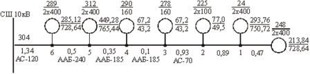 Расчетные нагрузки на отходящих линиях 10 кВ определяются суммированием нагрузок потребительских подстанций 10/0,4 кВ.