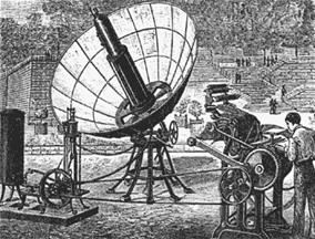 Еще в древности люди начали задумываться о возможностях применения солнечной энергии. Согласно легенде, великий греческий ученый Архимед сжег неприятельский флот, осадивший его родной город Сиракузы, с помощью системы зажигательных зеркал. Доподлинно известно, что около 3000 лет назад султанский дворец в Турции отапливался водой, нагретой солнечной энергией. Древние жители Африки, Азии и Средиземноморья получали поваренную соль, выпаривая морскую воду. Однако больше всего людей привлекали опыты с зеркалами и увеличительными стеклами. Настоящий "солнечный бум" начался в XVIII столетии, когда наука, освобожденная от пут религиозных суеверий, пошла вперед семимильными шагами. Первые солнечные нагреватели появились во Франции. Естествоиспытатель Ж. Бюффон создал большое вогнутое зеркало, которое фокусировало в одной точке отраженные солнечные лучи. Это зеркало было способно в ясный день быстро воспламенить сухое дерево на расстоянии 68 метров. Вскоре после этого шведский ученый Н. Соссюр построил первый водонагреватель. Это был всего лишь деревянный ящик со стеклянной крышкой, однако вода, налитая в немудреное приспособление, нагревалась солнцем до 88°С. В 1774 году великий французский ученый А. Лавуазье впервые применил линзы для концентрации тепловой энергии солнца. Вскоре в Англии отшлифовали большое двояковыпуклое стекло, расплавлявшее чугун за три секунды и гранит - за минуту.