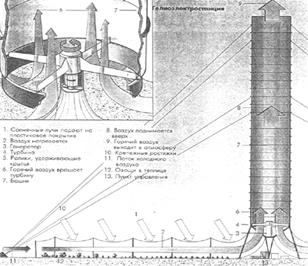 6. Термовоздушные электростанции (преобразование солнечной энергии в энергию воздушного потока, направляемого на турбогенератор).