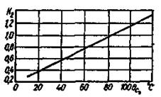 Рис. 11.2. Залежність коефіцієнта K2 від середньої температури води у водонагрівниках.