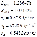 | В, Тл | Р, Вт/кг | q, ВАр/кг | q3 , ВАр/м2 |