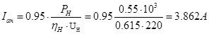 Визначаємо номінальний струм якоря трансформатора постійного струму паралельного збуждення.