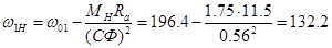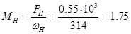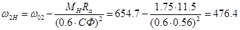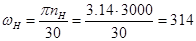 Визначаємо кутову швидкість трансформатора при номінальній нагрузці ![]()