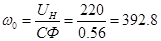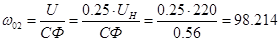 Визначаємо кутову швидкість трансформатора ні зразковому холостом ходу і ![]()