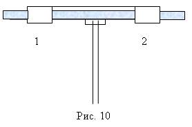 Для демонстрации этого эффекта можно воспользоваться установкой, в которой две шайбы надеваются на стержень, скрепленный с центробежной машиной. Шайбы соединены нитью (рис. 10). Вся система вращается с некоторой угловой скоростью. Когда нить пережигают, грузы разбегаются, момент инерции увеличивается, а угловая скорость уменьшается.