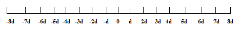 Найпростіше виконати такий розрахунок для випадку руху атомів тільки в одному вимірі (вздовж прямої). Припустимо, що в початковий момент часу атом знаходиться в точці 0. Тоді він виконує послідовні стрибки довжиною d кожен. (рис. 2.3.1).