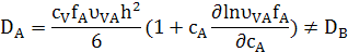 Якщо система не перебуває в рівновазі, потоки двох видів, JA і JB будуть відрізнятися, оскільки хімічний потенціал для кожного з двох видів на кожній ділянці різний. Так як швидкість, з якою атом А міняється місцем з атомом B повинна бути такою ж, як швидкість зміни місця атома B з атомом А, то Γ є однаковою для обох типів.