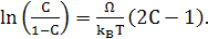 Критична точка при С=1/2 і Т=ТС , тоді kB TC =Ω/2.