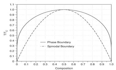 Для фази розділу, границя спінодальної області дорівнює