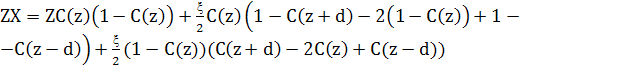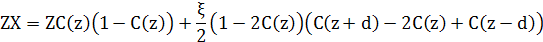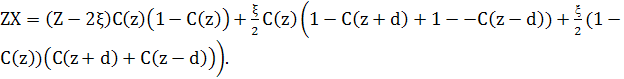 Кожен атом має Z найближчих сусідів, і ми припускаємо, що ζз них – найближчі сусіди з верхньої площини, і ζ– найближчі сусіди з нижньої площини, тоді (Z - 2ζ) – найближчі сусіди в цій самій площині. С(z) – концентрація атомів сорту В в площині при z , і 1 - С(z) - концентрація атомів сорту А. Тоді загальна кількість пар АВ для вузлів площини zдорівнює кількості пар АВ з інших вузлів в цій самій площині, плюс кількість пар АВ між концентрацією атомів А типу в площині z і концентрацією В атомів в площині z+d і z-d, плюс кількість пар АВ між концентрацією атомів В сорту в площині z і концентрації А в площині z+d і z-d.