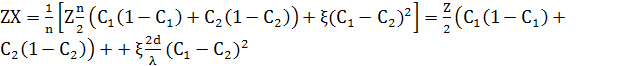 Перший доданок в рівнянні (7) тепер є кількістю зв’язків АВ в рівномірному рандомному сплаві. Другий доданок – поправка для кількості зв’язків АВ якщо структура не рівномірна.