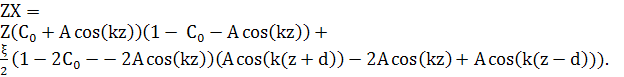 cos(k(z+d))+cos(k(z−d))=2cos(kz)cos(kd), рівняння (14) матиме вигляд: