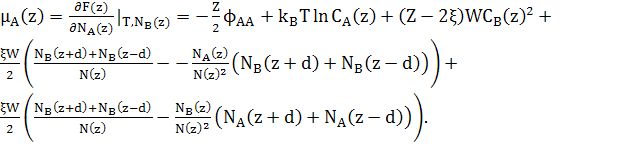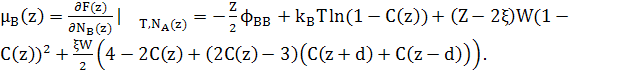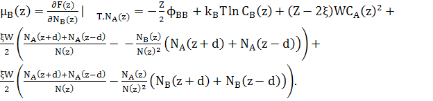 При розрахунках хімічних потенціалів, необхідно включити зміну енергії сусідніх шарів відповідно до змін концентрації шару z.