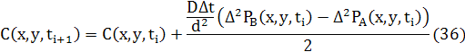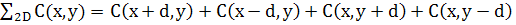 Як і для 1Dрізницеве рівняння для дифузії може бути записане в звичайній формі використовуючи усереднення двох потоків.