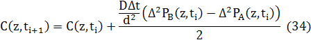 Різницеві рівняння для дифузії в 1D будуть записані в звичайному вигляді, але з використанням усереднення потоків двох видів. Потік атомів А у напрямку, протилежному потоку атомів B, тому потоки просумовані зі збереженням знака потоку атомів А.