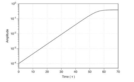 Рис.3.Логарифм зростання амплітуди синусоїдального збурення в часі