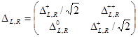 В схеме ЛПМ существует несколько возможностей выбора сектора Хиггса, однако общим элементом при любом построении является наличие бидублета Ф(1/2,1/2,0). Отличные от нуля вакуумные ожидания электрически нейтральных компонент поля Ф приводят к появлению масс кварков и лептонов. Далее можно ввести либо два триплета DL (1,0,2) и DR (0,1,2), либо два дублета XL (1/2,0,1) и XR (0,1/2,1). В первом случае нейтрино оказывается майорановым, а во втором - дираковской частицами. Анализ будет выполнен для майорановского нейтрино. Мультиплеты Хиггса представляем в виде компонент следующим образом:
