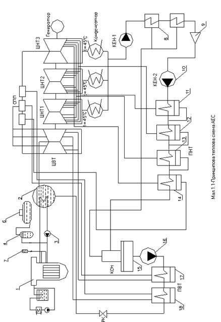 1.1 Принципова теплова схема 1-го і 2-го контурів АЕС