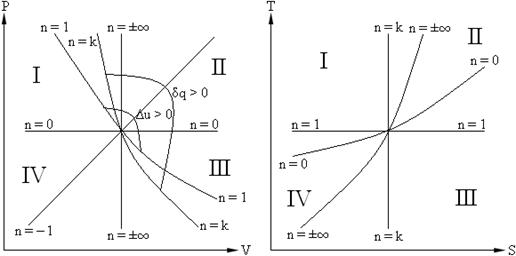 На рисунке ниже приведены политропные процессы в P – V и T – S координатах.