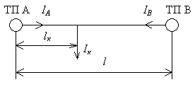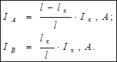 Для одностороннего питания ток поезда полностью равен току фидера: Iф = Iп . Для двухстороннего питания ток поезда распределяется между фидерами смежных подстанций обратно пропорционально расстояниям: