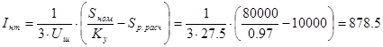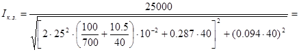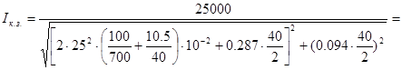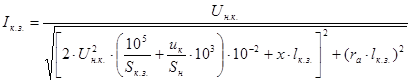 Iкн = 125000 / 1050 = 119,0 A; Xкн =1050² / 125000 = 8,82 Oм;