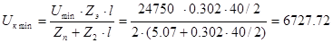 Zкзmax = 2 × (0,302 × 20 + 0,302 × 20) = 24.16 Ом;
