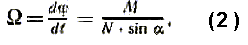 где а — угол, который вектор N составляет с вертикалью. Таким образом, угловая скорость Q вращения вектора N равна
