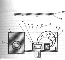 Метод получения тонких пленок термическим вакуумным напылением является универсальным и наиболее освоенным методом. Рассмотрим схему процесса термического напыления (рис.1).