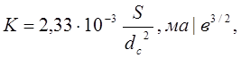 где dc — расстояние между сеткой и катодом, см; S - площадь поверхности катода, см2 .