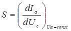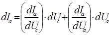 где dIa , dUc и dUa обозначают (например, синусоидальные) изменения величины Iа , Uc и Ua .При достаточно малых изменениях характеристика в области управления (в окрестности рабочей точки) может считаться прямолинейной, т. е. выражения в скобках в уравнении (7) являются постоянными величинами. Их значения могут быть рассчитаны по известному ходу характеристик Iа —Ua или Iа —Uc в окрестности рабочей точки. При этом отношение