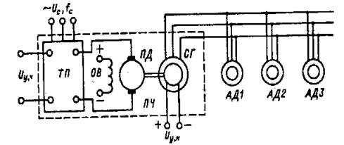 Мал. 4.1.1. Схема електропривода з електромеханічним перетворювачем частоти