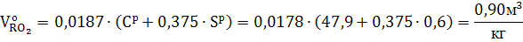 – полный объем газов при сжигании 1 кг топлива при 0,1 МПа и 0°С, определяемый по среднему избытку воздуха в газоходе, м3