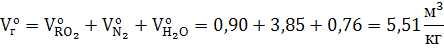 4.Полный объём газов, м3/кг VГ= +1,0161(aср-1)∙ |