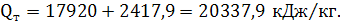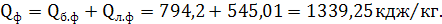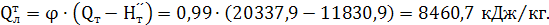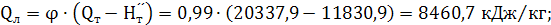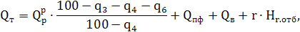 – удельное тепловосприятие топки, кДж/кг, определяется по формуле (4.23) [2]: