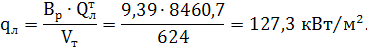 – среднее тепловое напряжение поверхности нагрева топочных экранов, кВт/м2