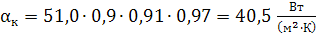 – коэффициент теплоотдачи конвекцией, Вт/(м