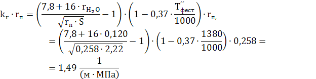 Коэффициент ослабления лучей трехатомными газами определяем по формуле (4.40) [2] при