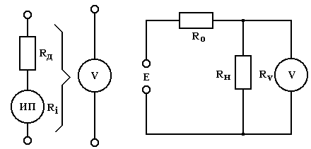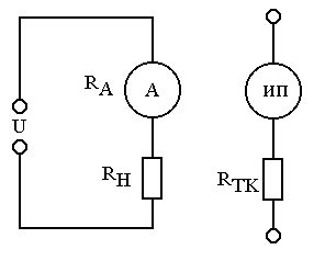 Так как RA в обоих случаях является конечной величиной, режим электрической цепи после включения в нее амперметра изменится, т.е. измеренное значение тока IИЗМ протекающего через нагрузку RH при включении в цепь амперметра, будет отличаться от действительного значения тока I, протекающего через RH до начала измерений. Однако данная погрешность является систематической и может быть вычислена и исключена из результата измерений.