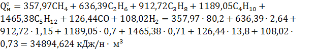 где 357,97; 636,9;… — низшая теплота сгорания 1% сухой массы соответственно метана, этана, … в процентах по объему.