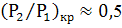 при Р2 / Р1 < 0,5 (или Р2 / Р1 > 2) регулятор работает в критическом режиме.