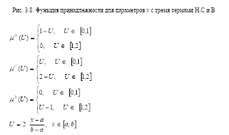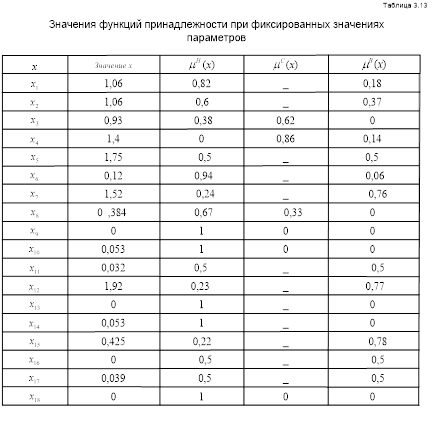 Подставляя в формулы найденные значения x, получим значения функций принадлежности. Все эти величины приведены в таблице 3.13.