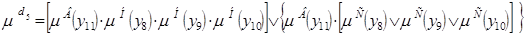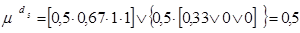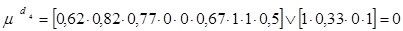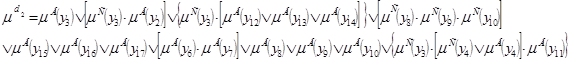 Поставляя значения функций принадлежности из таблицы 3.13 получим: